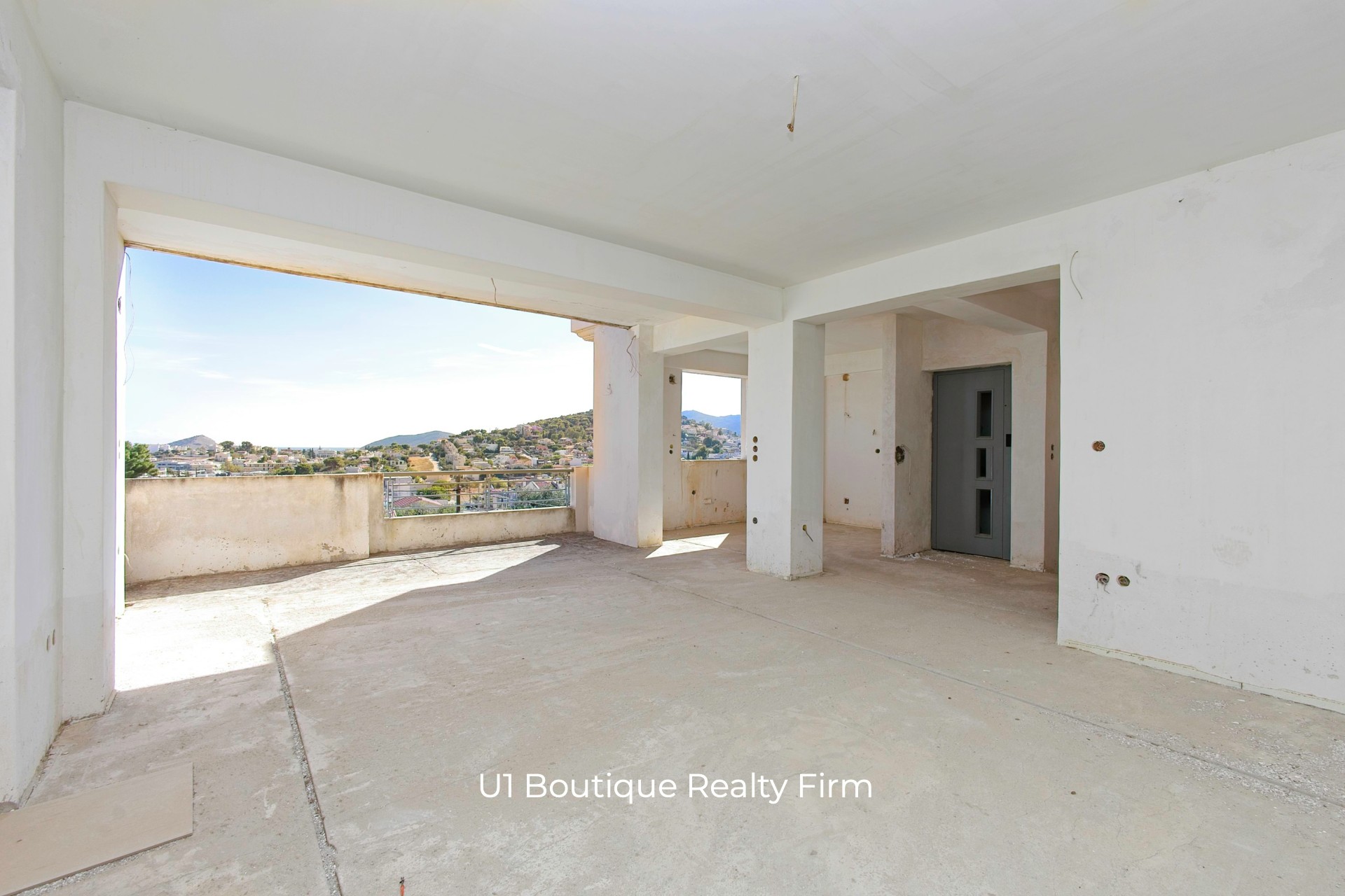 Το ακίνητο βρίσκεται στο στάδιο των σοβάδων, με προεγκατεστημένες παροχές για ενδοδαπέδια θέρμανση, κλιματισμό, συναγερμό και ανελκυστήρα. Διαθέτει επίσης κήπο, βεράντες, τζάκι, σοφίτα, αποθήκη και θέση στάθμευσης.
