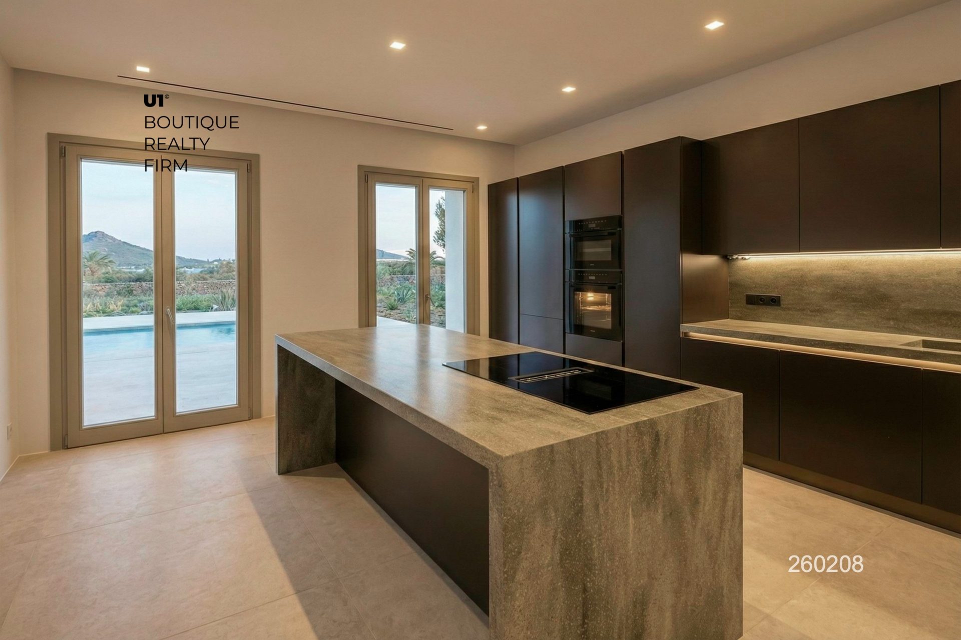 Η κύρια κατοικία αναπτύσσεται σε φωτεινούς ενιαίους χώρους με μεγάλη κουζίνα και τρία υπνοδωμάτια με en-suite μπάνια, όλα στραμμένα προς το γαλάζιο. Ο αυτόνομος ξενώνας με ιδιωτική είσοδο και mini πισίνα, ο ανεξάρτητος πολυχώρος για guest room ή gym και το βοηθητικό κτίσμα προσφέρουν απόλυτη λειτουργικότητα και άνεση.