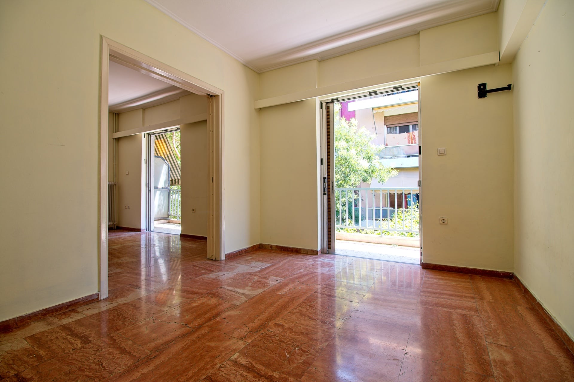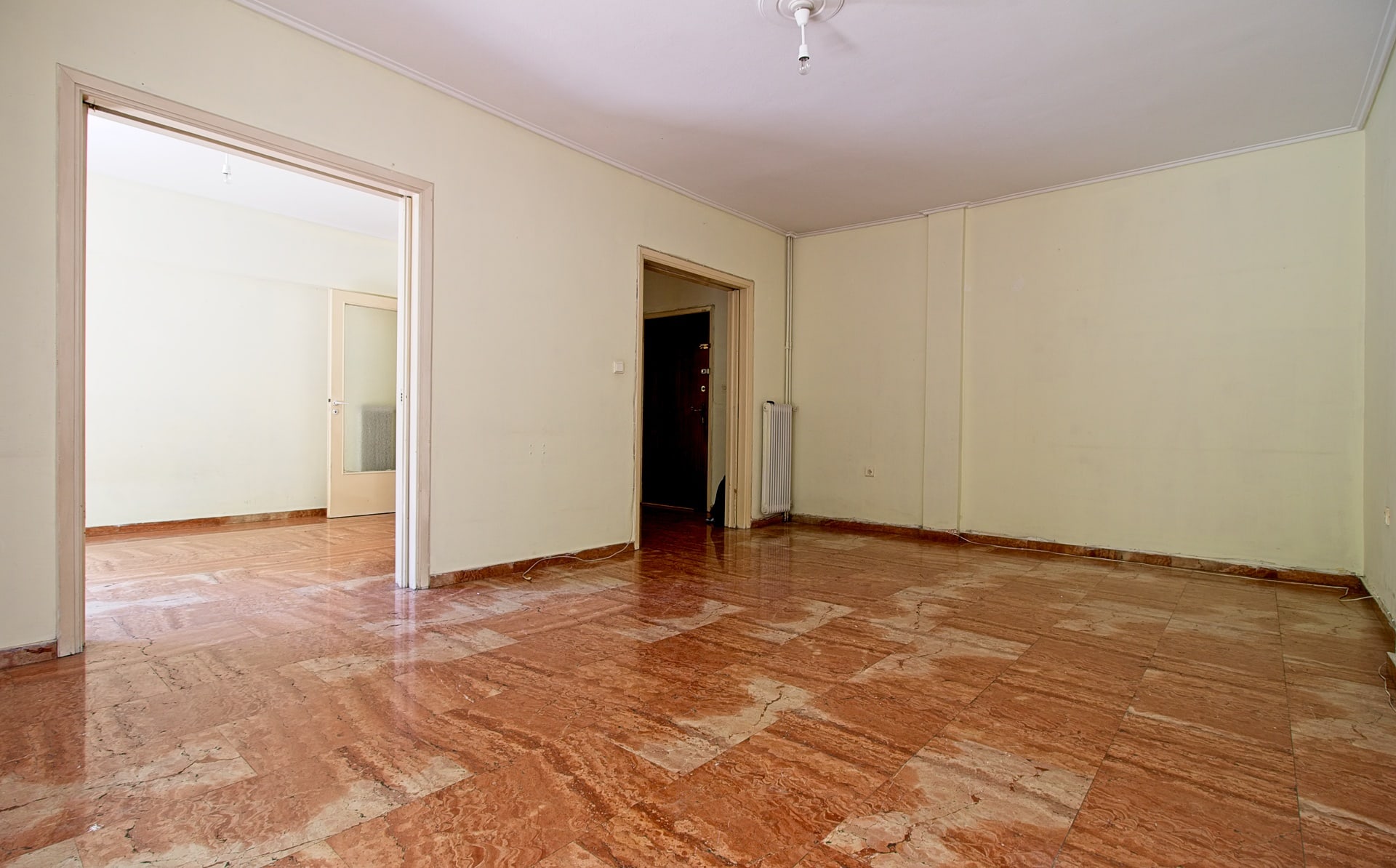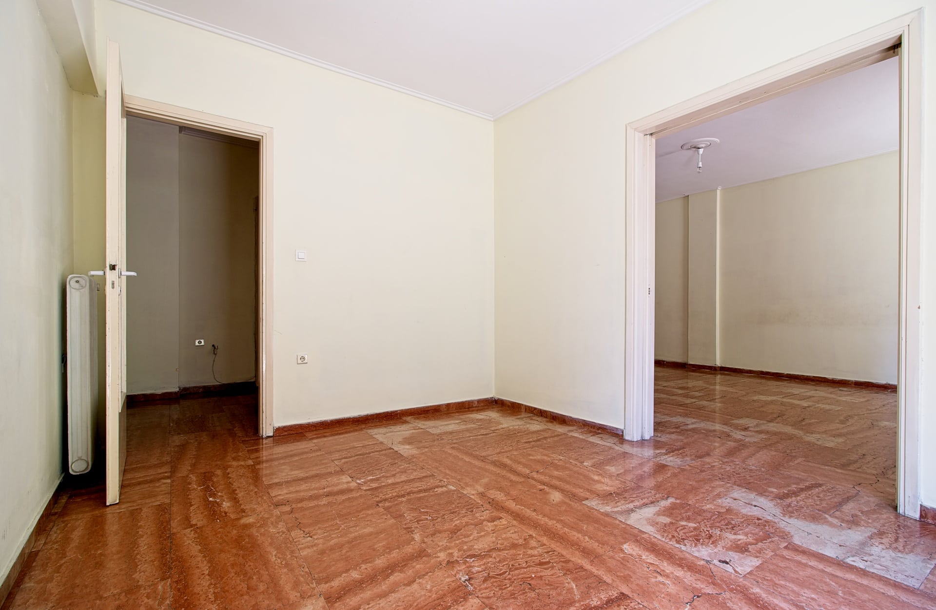 Στην Νεάπολη Εξαρχιών, 200μ από τον Πεδίον του Άρεως και 350μ απο το εθνικό μουσείο, γωνιακό διαμέρισμα 104 τμ 2ου ορόφου που αποτελείτε από 2 υπνοδωμάτια, καθιστικό, τραπεζαρία, 1 μπάνιo, 1 WC, αποθήκη και 2 μπαλκόνια. Το διαμέρισμα χρήζει ανακαίνισης και διαθέτει κεντρική θέρμανση πετρελαίου. Έτος κατασκευής 1979