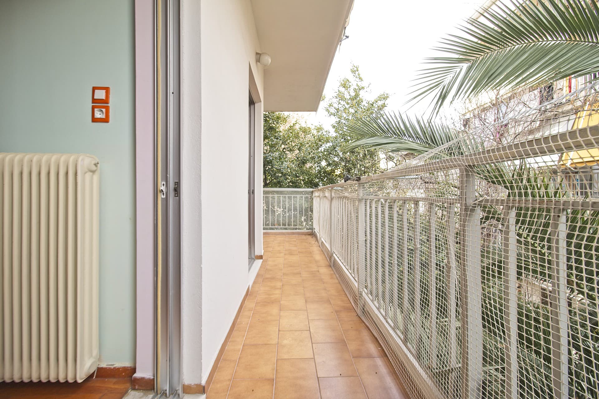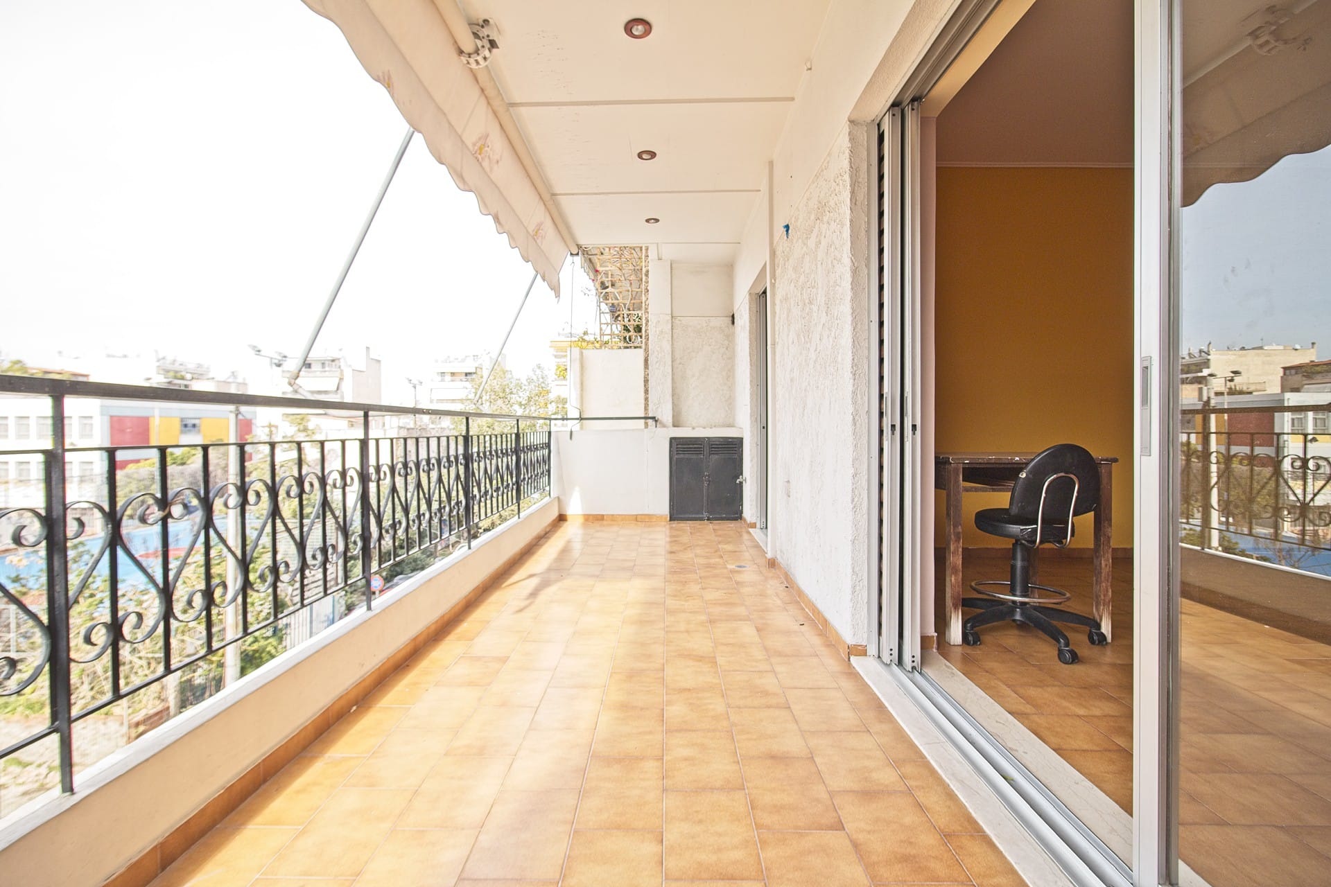 Οροφοδιαμέρισμα 105 τμ, δευτέρου ορόφου, διαμπερές, το οποίο αποτελείται από 3 υπνοδωμάτια, κουζίνα, σαλόνι, χώρος υποδοχής, 1 μπάνιο, 1 wc, και 2 ευρύχωρα μπαλκόνια. Τα κουφώματα είναι αλουμινίου με μονούς υαλοπίνακες, έχει αυτόνομη θέρμανση πετρέλαιου, εγκατάσταση ηλιακού θερμοσίφωνα και ταχυθερμαντήρα.