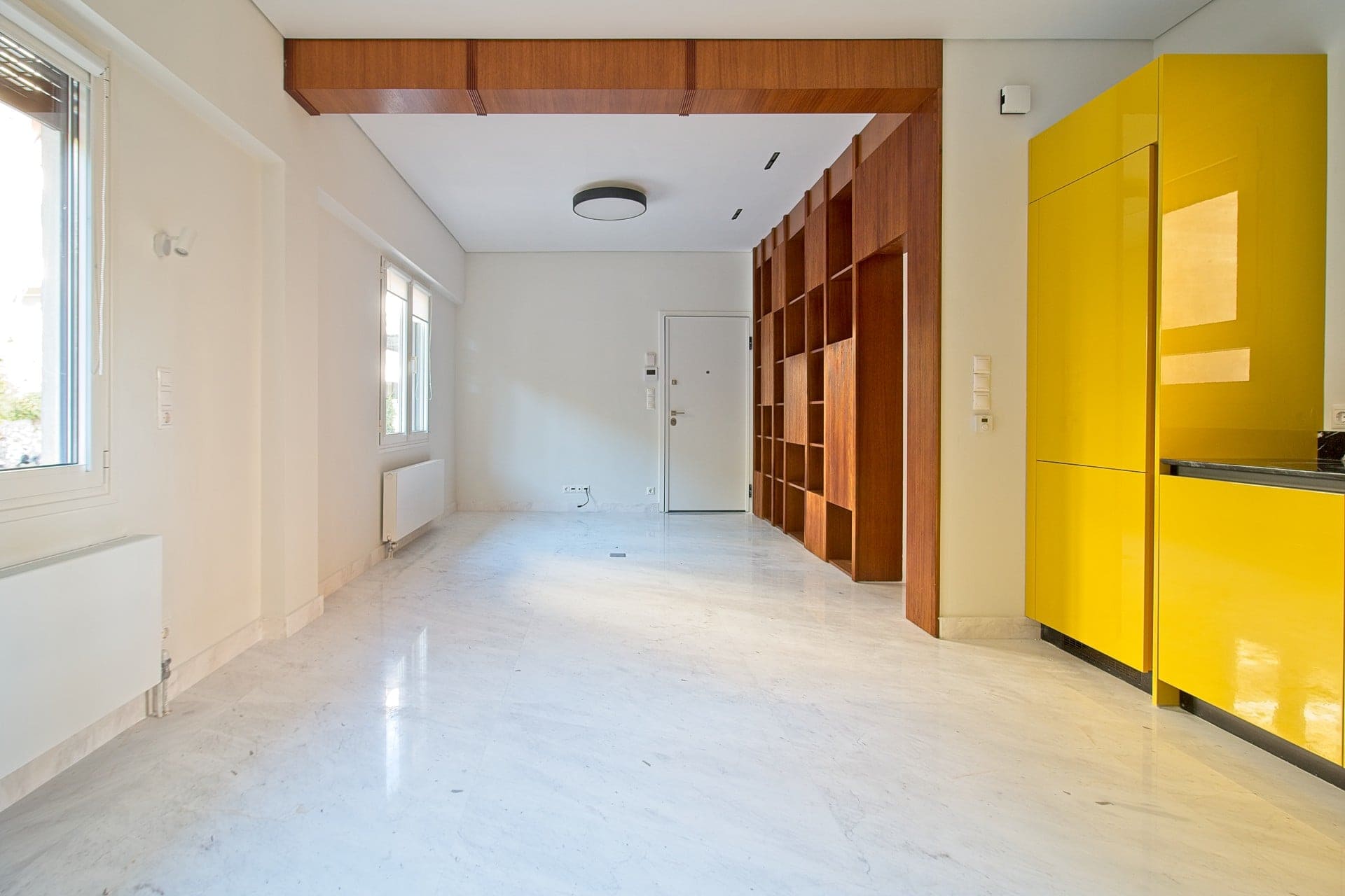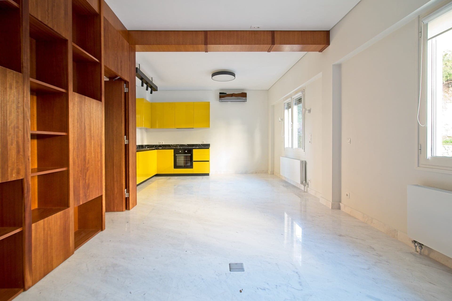 Λυκαβηττός (τελεφερίκ). Ήσυχο και φωτεινό οροφοδιαμέρισμα 58 τμ με θεά τον λόφο του Λυκαβηττού που αποτελείται από, ένα υπνοδωμάτιο (μάστερ), καθιστικό με ανοιχτή κουζίνα και εσωτερικό μπαλκόνι. Είναι πλήρως ανακαινισμένο και εξοπλισμένο με ηλεκτρικές συσκευές, διαθέτει αυτόνομη θέρμανση με φυσικό αέριο, κλιματισμό, κουφώματα αλουμινίου με διπλούς υαλοπίνακες και σήτες, πόρτα ασφαλείας και συναγερμό. Το διαμέρισμα βρίσκεται σε τετραώροφο κτίριο του 62′ και τα κοινόχρηστα υπολογίζονται στα ~10 ευρώ. Ε.Κ. (Β)